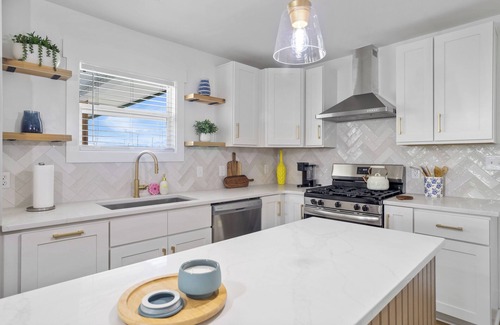 -A full kitchen with cookware, dishes, and appliances for all your meals