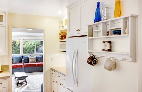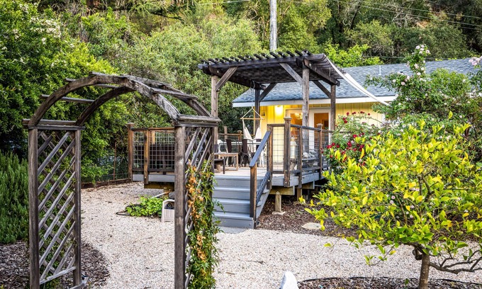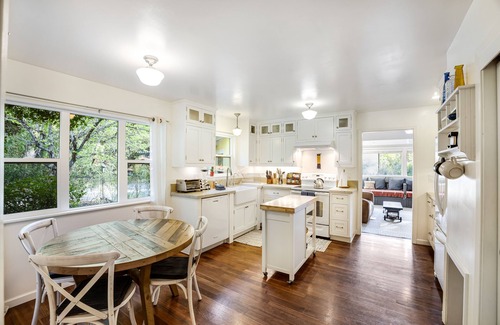 This dog-friendly home provides guests with two incredible, sought-after perks: an amazing location in a private setting and out-of-the-ordinary amenities for a breezy and unforgettable stay! You will feel far away in the country, however, only two and a half miles from downtown Cloverdale and 90 miles (1.25 hours) away from Bay Area. Discover something no other vacation rental will offer you, which is access to Big Sulphur Creek with a private sandy beach that is very special, if not unique. The large yard offers an incredible setting, with a well-furnished deck with several seating options and a gas grill, and creek-side deck with a hammock, a swing, and two chairs with a side table.