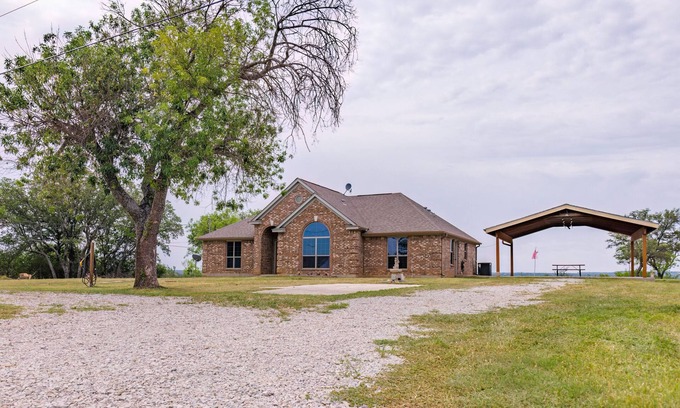 We want to welcome you to Honey Rock Lake View House, an incredible 3/2 brick home overlooking Lake Brownwood with a stocked kitchen and all the privacy you could want for your vacation. This property is the last house on a dead-end street and is surrounded on two sides by over 800 acres of privately owned land. Located just a couple of miles from Lake Brownwood State Park this home could serve as a central gathering point for YOUR next vacation.