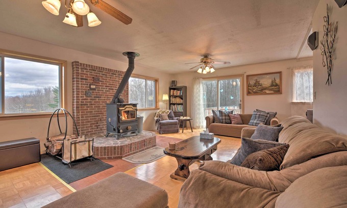 Prepare for a Pocono Mountain winter getaway with this delightful 4-bedroom, 2.5-bathroom vacation rental as your home base! Perfect for adventurous groups, this Pleasant Mount, PA, home invites you to experience the ease of alpine living after skiing at Elk Mountain Ski Resort or taking a day trip to Honesdale. Enjoy a soak in the private hot tub or stream your favorite shows on the TV!
