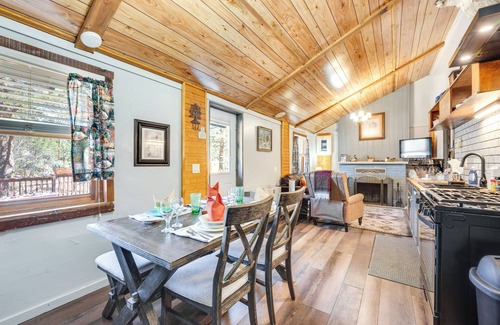 Outdoor adventure for the entire family awaits at ‘Indian Trails.’ This charming vacation rental in Drake offers a picturesque riverfront setting, on-site fishing, and a perfect location with easy access to Downtown Estes Park. When you’re not exploring Rocky Mountain National Park or hitting top-rated local eateries, head back to the 2-bedroom, 1-bath cabin to take advantage of the private hot tub!