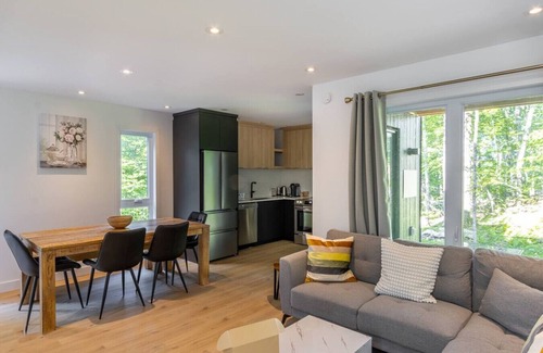 Chalet Harmonia is a delightful sanctuary located in the heart of Argenteuil, where you can unwind surrounded by lush greenery and the serene sounds of nature. This charming chalet features an inviting open-concept living area filled with natural light, perfect for relaxing after a day of adventure. The outdoor spa offers the ideal place to soak and rejuvenate. Explore local attractions like the stunning Rivière du Nord and Parc de la Chute-à-Patsy which are just a short drive away. Enjoy kayaking on the river or take a leisurely hike through the scenic trails, then return to your private oasis for a BBQ under the stars.