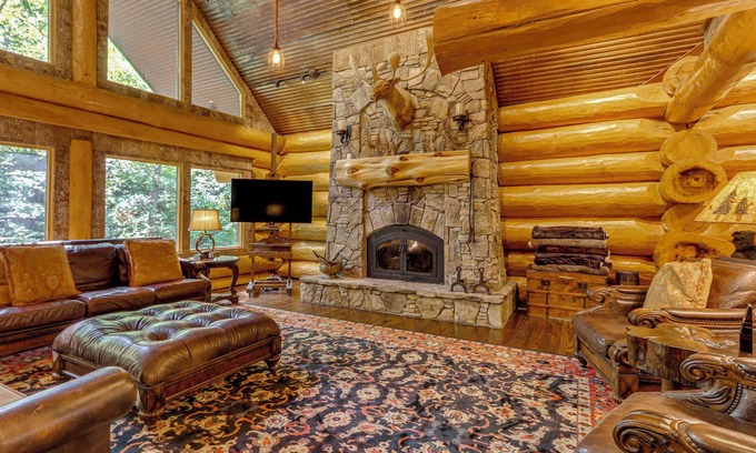 No noise, no traffic — just Georgia’s natural beauty! Live out your 'Yellowstone' dream at this rustic 5-bedroom, 4-bath Ranger vacation rental. With authentic log cabin vibes and resort-style amenities, this retreat perfectly blends relaxation and adventure. Enjoy fishing, boating, and swimming, then unwind in the theater or next to the fire pit for a cozy night after a day of outdoor fun.