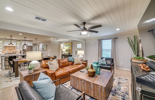 Private Hot Tub: Luxe Gem 3 Mi to Lake Ray Roberts is located in Pilot Point. Private Hot Tub: Luxe Gem 3 Mi to Lake Ray Roberts provides accommodation, featuring Bedding/Linens, Wellness Facilities, Fireplace/Heating, among other amenities. This House features Bedding/Linens, Wellness Facilities, Fireplace/Heating, to make your stay a comfortable one.