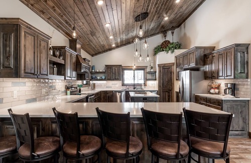 - Spacious Accommodations: This luxury cabin features four bedrooms and six bathrooms, comfortably hosting up to 15 guests—a perfect setup for your wedding party or extended family.