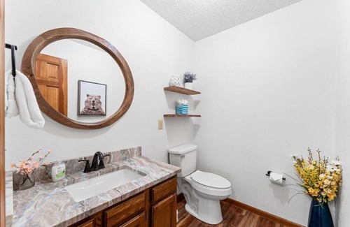 Bedroom 3 – 1 King, 1 Queen, and a Twin bunk bed with a large ensuite bathroom (separate sink area makes getting ready easy!)