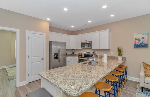 NEW HOT TUB JUST INSTALLED AND READY TO USE. Enjoy the coastal charm of this newer property steps from the beach. Stroll one block to the start of the Boardwalk and enjoy the pier, award winning restaurants, and lots of entertainment. Walking distance to Family Kingdom Amusement Park and Splashes Waterpark. Conveniently located only 2 miles from the Myrtle Beach Convention Center and 3 miles from the Myrtle Beach Airport. Enjoy Myrtle Beach in this newer home! If you need more space for family & friends, check out our sister property immediately on the left, Paradise Palms South! Shared seasonal (open APR to OCT) pool in between the two properties. Follow us on IG at paradise_palms_mb, for updates on the properties and things to do in Myrtle Beach.