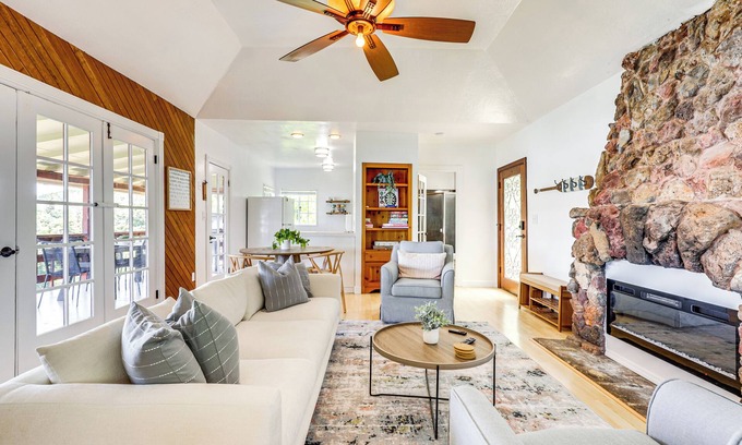 As you settle into this 2-bedroom, 2-bathroom rental, you'll find a living room, a fireplace, air conditioning, and a ceiling fan. Prepare a home-cooked meal in the kitchen, complete with an oven, a stovetop, and a dishwasher, as well as a coffee maker, cookware, and paper towels.