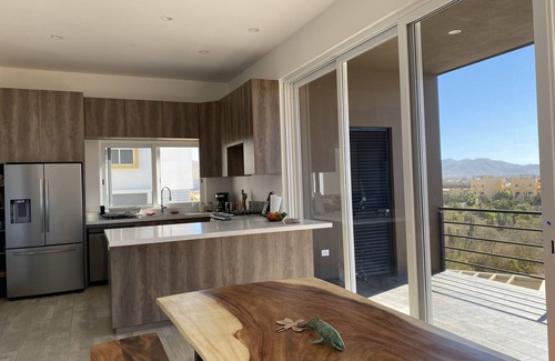 Brand new condo with direct views to Cerritos surf break. The location is UNREAL. Walk to so many favorite restaurants. Enjoy your private patio hot tub. Relax on the comfy sofa after a long day at the beach. Hang by the idyllic pool. Decorated with simple yet contemporary Baja styling. Choose 2 king beds or 1 king and 2 twins. Both bedrooms have en-suite bathrooms. 2nd story unit, with an elevator!