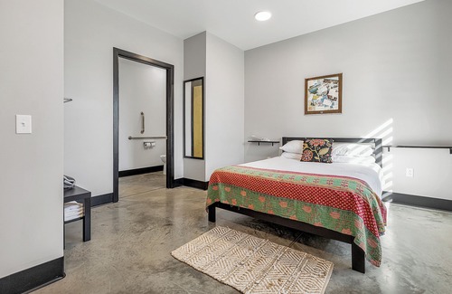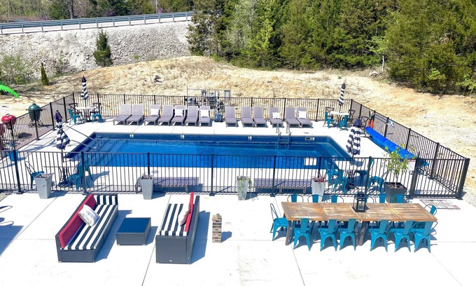 Transformable spaces for events, team travel, family reunions and so much more. The inside has a chefs kitchen, ping pong and pool tables, games, train and lego tables. An event room for up to 70. Both the event space and the hotel space offers garage doors for an indoor/outdoor experience. Swimming pool along with 18 hole disc golf course on 7 acres of woods. Transform the property for a large event or enjoy the space as it is. Heating the pool is available for an additional charge.