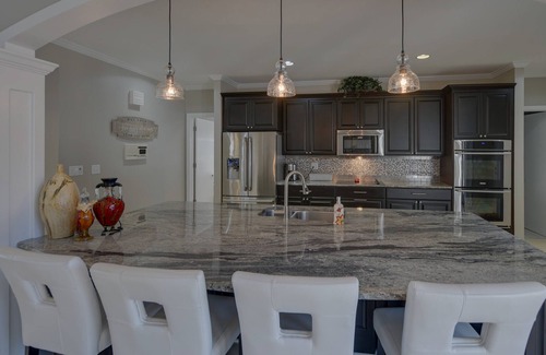 You will appreciate the new high quality custom designer furnishings throughout this home. The large open main floor main living area has everything to offer as your primary entertainment area. Completing the main floor are three bedrooms and two full baths. The master bedroom is outfitted with a king bed, ensuite bathroom with his/her walk-in closets. The second bedroom boasts a king bed, and the third bedroom, a comfortable queen bed. Both the second and third bedroom are equipped with nightstands and a private closet.