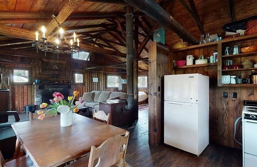 This is a complete island all to yourself in the middle of Portage Lakes main chain of lakes. This vintage 1918 log cabin is perfectly preserved and has a full kitchen with everything you need to cook including coffee, tea and much more. Sleeps four comfortably with one private room. Enjoy the outdoor covered pavilion with a custom fire pit for cooking over a wood fire and gas barbecue. Bring your boat and dock it on site. With over 37 miles of shoreline enjoy the Beach, Restaurants, Popular Night Clubs, Winery and many other water activities. One of the best fishing holes in Ohio just feet from your door. Don't feel like cooking enjoy the large number of close by restaurants. The large covered pavilion will allow you to enjoy the outdoors even in the rain. When you open the door and enter the cabin it's like going back to 1917 with authentic period decor complimented with modern amenities. This is not a glam experience this is real old school 1918 experance. Reconnect with nature and one of the most unique getaway experiences available. Walk back in time on your own private island centrally located in the Portage Lakes Ohio. The cabin is not suitable for children. We can have firewood delivered per your request and highly recommended. A 120 volt outlet is available for EV charging. As the world has changed this island is a time capsule that has been preserved to bring back a connection to the past. Be assured we will treat you to a clean, well managed stay that you will remember for years to come.