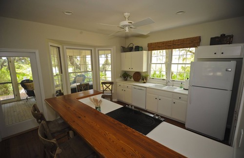 This very comfortable cottage has high ceilings and large windows that create a light atmosphere and lets you enjoy this special setting. Built in 1992 and recently updated, this little house sits adjacent to the 'main' house. They are two of only three houses on the island.