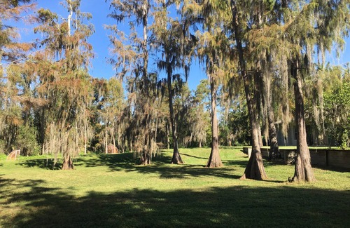 The grounds are beautifully manicured and have many Cypress tress and Orange trees throughout the property.