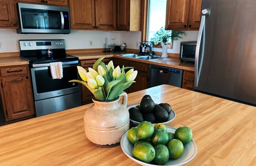 Relax and play at this scenic waterfront retreat with stunning views. Paddle the lake, picnic on the nearby island, or enjoy ping-pong, shuffleboard, foosball, and other games in the spacious lower level.