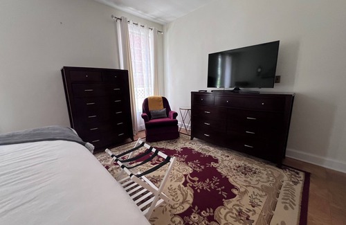 King bed with zero gravity & massage features. Feel free to enjoy any of the properties great amenities including an ionizing hot tub, fire pit, private parking, gated entrance, high end therapy massage chair or swing on the front porch before walking to the park or any of Ashlands amazing. Ensues, restaurants or events