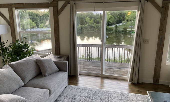 Step outside your door for gorgeous lake views of Bullock Pen Lake. Drop a line off the dock, or make use of complimentary fishing kayak or Jon boat with trolling motor. Enjoy a coffee on the many seating options on the covered patio, or open deck overlooking the water. Regardless of weather, there are plenty of gaming options available! Unwind with S’mores at the fire pit!