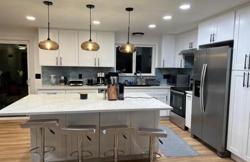 Providing a garden, Private Lake House features accommodations in Puyallup. Private parking is available on site at this recently renovated property. Outdoor seating is also available at the vacation home. Featuring a terrace and lake views, the spacious vacation home includes 4 bedrooms, 2 living rooms, flat-screen TV, an equipped kitchen, and 3 bathrooms with a bath and a shower. Towels and bed linen are available in the vacation home. There's also a seating area and a fireplace. Museum of Glass is 15 miles from Private Lake House, while Pacific Lutheran University is 12 miles from the property. Seattle–Tacoma International Airport is 27 miles away.