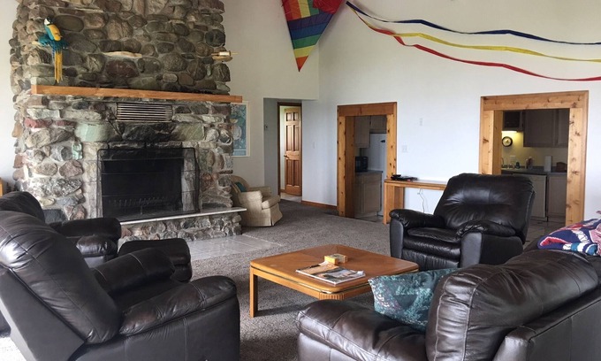 The main house features a 16-foot stone fireplace in the great room, well-furnished, and regulation-size pool table, plus a full bath, expansive kitchen, dining table seating for 12+ and three bedrooms. The adjoining guest house connected by a 10-foot covered walkway provides additional living space, a gaming area including foosball, laundry, sauna, full bath and three bedrooms. Stonington House is a comfortable gathering place for all ages!