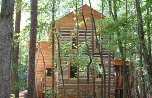 Cornerstone Cabin has a tin roof, making the rain's pitter-patter so soothing. Another unique feature is that it has a full 2nd story. Most cabins constructed with old square logs are 1.5 stories with a loft or knee walls upstairs. Cornerstone has lots of windows & 7 ceiling fans throughout the house so you can throw open the windows & enjoy the fresh air & wildlife sounds. For your sleeping comfort, there are hand-made wooden shutters throughout the house to darken the rooms.