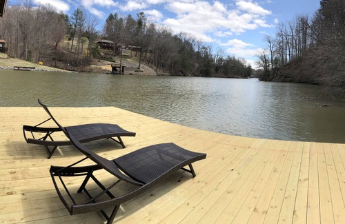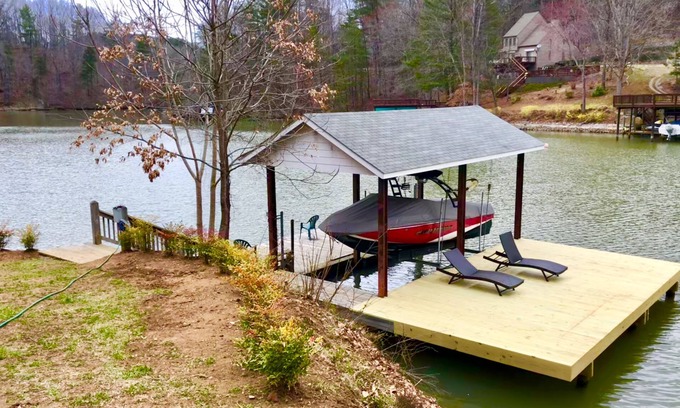 - Private Lakefront Home W/Dock, Fire pit, outside shower & Hot tub