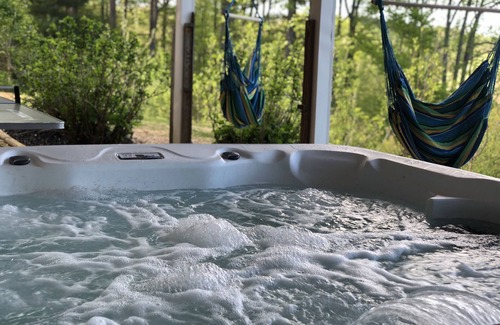 • Lounge in the 7-person hot tub or sway gently in hammock chairs overlooking the water.