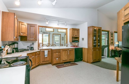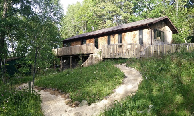 Your stay at Birch Bay Retreat includes an array of amenities designed for comfort and enjoyment. The spacious family cabin accommodates up to 14 guests with various sleeping arrangements, including beds, sleeper sofas, and futons. Delight in the large kitchen and family-sized dining room, where you can enjoy meals while overlooking the breathtaking views of the lake and wildflower garden. Outdoor enthusiasts can take advantage of our complimentary canoes or pontoon boat, suitable for swimming, fishing, and leisurely exploration. Gather around the campfire in the evening for cozy moments, and take advantage of our well-equipped game room for fun-filled indoor activities.