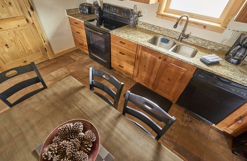 The Sunset Cabin was designed and furnished to make your vacation here in southern Utah relaxing and convenient. The 2 bedrooms with ensuite bathrooms means everyone has their private space and the open concept living, dining and kitchen provides the perfect space to cook, entertain and enjoy time with each other.