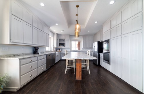 - Fully-Equipped Kitchen: Enjoy a pristine kitchen with ample dining space, a double oven, and full-size refrigerator, making it easy to cater meals for your wedding festivities.