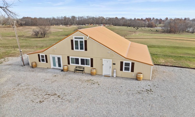 Come enjoy the great outdoors with a stunning view from our Barndominium loft studio! Our loft studio is very clean and fully equipped to sleep up to 5 guest. It has a gated entrance that offers privacy and security for our guests. Situated about 23 min from KCI, 7 min to Liberty, 25 min to Chiefs/Royals stadiums, & 30 min to downtown KC.