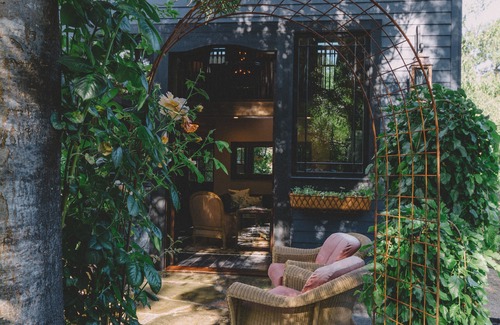 once in, swing open the grand doors onto your private patio (unfenced) surrounded by a lush planted garden full of blooming flowers, Veggies and Herbs - all for the picking during your stay.