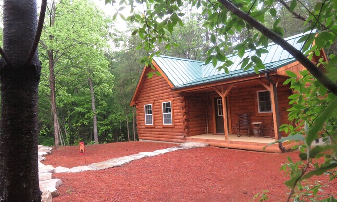 Log cabin 1 bedroom 1 bath, private location, close to shopping and restaurants, hiking and bike riding very close in area. Close to Asheville and Hendersonville, lake Lure and Chimney Rock and DuPont State Forest, porch with rocking chairs to relax and take a nap and watch nature.