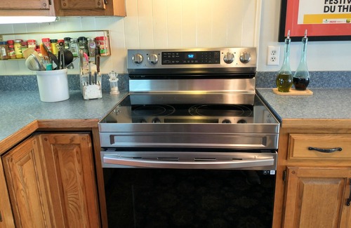 After your adventures, grab a 28-inch Benny's pizza to enjoy by the cozy new propane fire pit, or cook a four-course meal in our fully-equipped kitchen. Read a book or watch for deer in the cool of the carport, or spend the evening star-gazing from the deck (or better yet, grab some blankets and take in the night sky from our safe and spacious yard, portable telescope provided!)