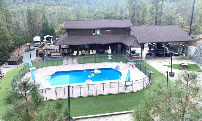 Private mountain getaway. Just 4 miles from downtown Weaverville and just minutes from Trinity Lake, Trinity River and the Trinity Alps! Outdoor entertaining area that has a private pool, hot tub, fire pit and large deck for gathering.