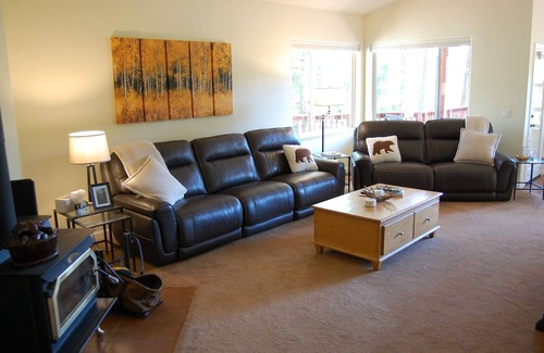 The living room has two brand new fully reclining electric leather couches and a 75 inch LCD TV ready for your streaming options. There is high speed wifi internet access throughout the house.