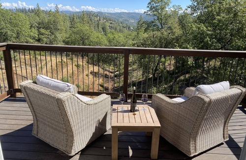 Enjoy views of the Sierras from multiple rooms and balconies, challenge friends to a game of Bocce Ball, sway on tree swings, or unwind on the party deck with plush couches and a warming fire table. Ideal for couples getaways, girls' trips, family reunions, or simply a memorable family vacation.