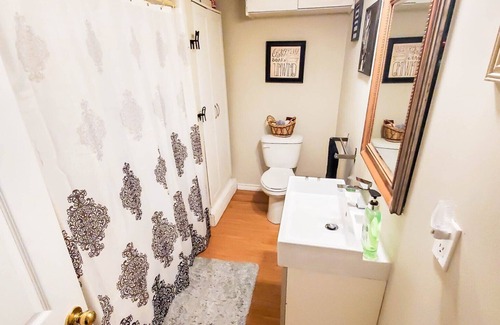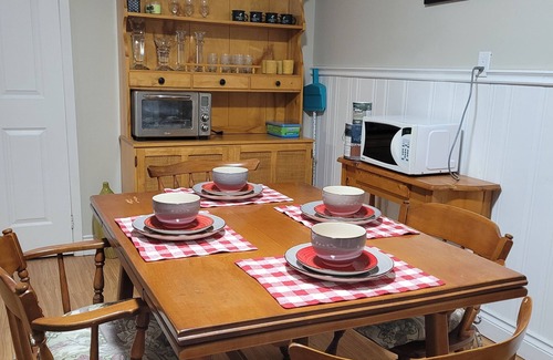 Beautiful home in Muskoka. Super spacious. 1400 sq feet on 2 levels of house. Massive back yard with everything you need. 3 televisions. Fast internet. Lots of parking. Separate entrance. 5 minutes from 2 beaches. 5 minutes from town. 2 minute walk to Lake muskoka. BBQ. Corn hole game. Very private pool. All linens supplied. Great for quite relaxing time. totally private. this is not shared. you and your guests will have the complete 1400 sq ft suite to yourselves. Enjoy Muskoka. plus enjoy many breakfast items to start your day right. enjoy.