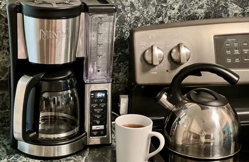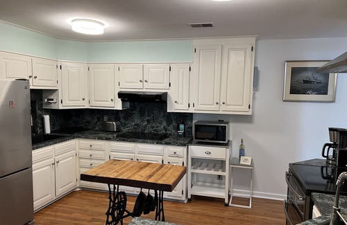 KITCHEN: Spices provided, 1 cooktop, 1 stove with a cooktop and double oven, 2 sinks (4 dish towels, Dawn dish soap, and sponges provided), Bosch dishwasher (dishwasher detergent tablets provided), microwave, blender, coffee maker & grinder (filters provided), crockpot, refrigerator, stand-alone ice maker, hand mixer. Cleaning supplies available under the corner sink.