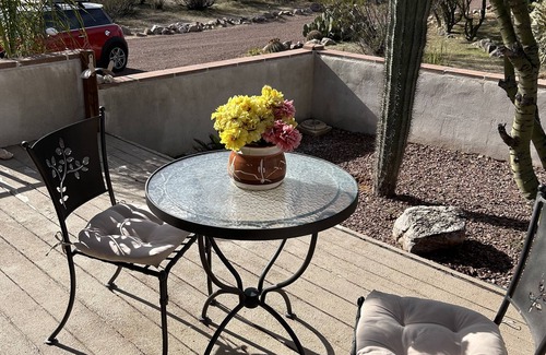 Write your book, paint the landscape or play your song. Dine outside under the ocotillo ramada, with fire pit and BBQ or indoors by the fireplace. Finally, relax in the spa under a star-filled sky.
