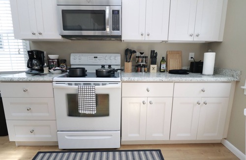 This 1,934 sqft home is a ranch with 2 bedrooms, two full baths, and a basement. A modernized home that includes a light and bright kitchen with skylights, stainless steel appliances, and high-end furniture. The main bedroom suite includes a private bathroom, 50-inch Smart TV, and adjoining study room with a sofa that converts into a futon for extra sleeping. Comfortable Living room with 50-inch Smart TV included with Netflix. The basement has a washer and dryer for your convenience. Gorgeous property, quiet, fully fenced with perennial gardens and multiple seating areas. 2 extra floor mattresses and sofa that converts into a futon bed for sleeping up to 9 people.