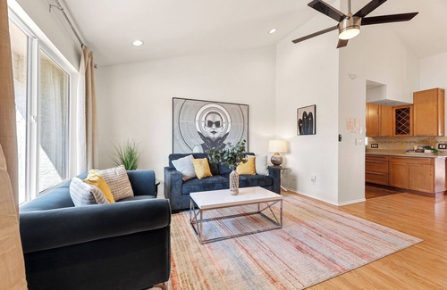 PRIVATE OASIS with heated swimming pool! This updated home has the most surprising and extraordinary backyard. Nice appointed home with all the necessities included. This home features 2 bedrooms, 2 bathrooms, private desk/office space. well stocked kitchen, comfortable living & dining room, 2 car garage attached & the most amazing private backyard. The home includes a heated pool from November to April at no charge to guests. Wifi, smart TV's, outdoor grill. We support equality!