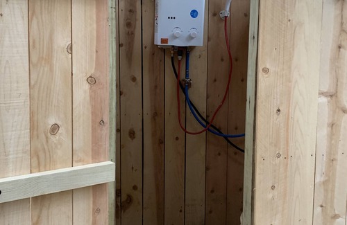 This is a two night maximum stay property. Hike into your private one room cabin in the woods. Relax with a good book on the porch, cook over a campfire or walk the trail metal detecting for treasures. The cabin is completely off grid with 70 gallons of fresh water, solar / battery power and propane heater or wood stove for those chilly nights. The outdoor kitchen has a propane two burner stove, small sink with cold water, skillet, pot, dishes, silverware, coffee cups, coffee maker and towels. I also provide coffee, hot chocolate, oatmeal, sugar, coffee creamer, spray oil, salt and pepper. The bathroom is outdoors with a compost toilet and outdoor heated shower. The sleeping area features a double size murphy bed on first floor and twin bed in loft. Bed linens are provided plus extra blankets in loft. Fire wood provided.