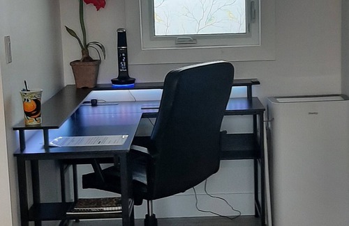 One bedroom with Queen bed. Full bathroom with tub/shower combo. Work station with desk.