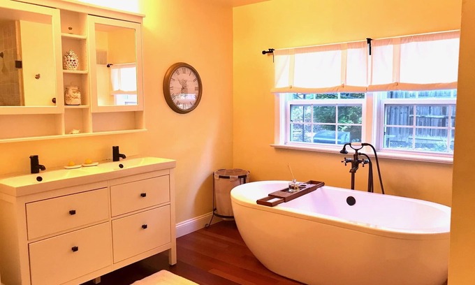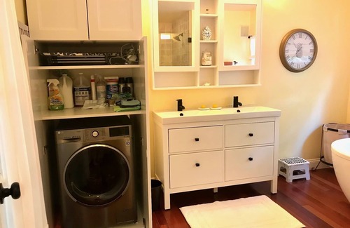 Enjoy your own private suite with your own private entrance, in a park like setting on 2 + Acre Lot. Near great falls national park, surrounded by multi million dollar properties, and yet within minutes to tysons corner (Amazing shopping and dining experience!), and within 20 miles to DC. The suite comes with its own new kitchen, living and dining areas, and a luxurious master bathroom with free stand in tub, double shower, and updated steam laundry (your own smart WiFi enabled LG Washer/Dryer)