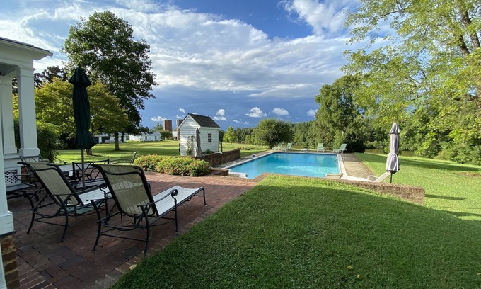 Private Paradise - Historic 1870 Home on 630 Acre Estate - Pool, Lake, Views is located in Goochland. Private Paradise - Historic 1870 Home on 630 Acre Estate - Pool, Lake, Views provides accommodation, featuring Laundry, Pet Friendly, TV, among other amenities. This House features Laundry, Pet Friendly, TV, to make your stay a comfortable one.