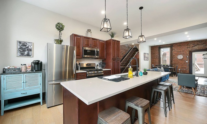 Private 2-story townhouse newly renovated in 2021. Perfect mix of modern finishes and original features. The second floor includes a fully stocked modern kitchen with a coffee and breakfast bar, a spacious dining room, and a 65' cable-ready TV in the living area. Beautiful original brickwork The third floor consists of 3 bedrooms. Plenty of window light, downtown views on one end and Mt. Washington views on the other. Outdoor deck with BBQ, and private parking. Steps away from Southside Flats.