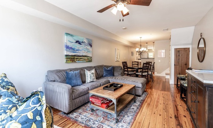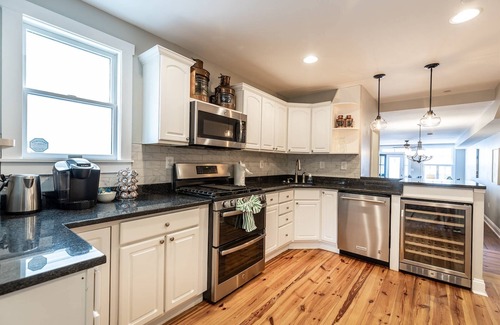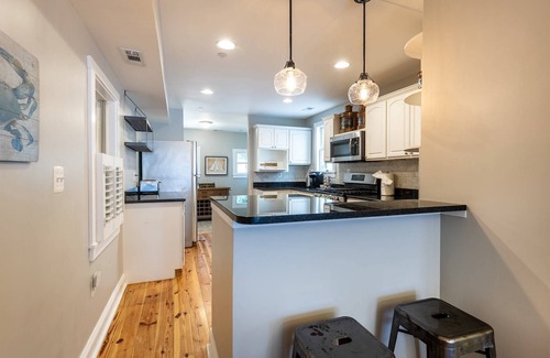 Fully renovated in 2017, the kitchen is equipped with high-end stainless steel appliances (including a dual-temperature wine fridge!), granite countertops and opens up to the dining and living areas. The original hardwood floors have been re-finished, adding to the historic Annapolis charm and feel. In addition to the comfortable sleeping arrangements for 8, step out back into a massive outdoor living and dining deck with a gas grill and a fire pit. Head upstairs to the 4 bedrooms and 2 baths and relax on the private King Suite balcony.