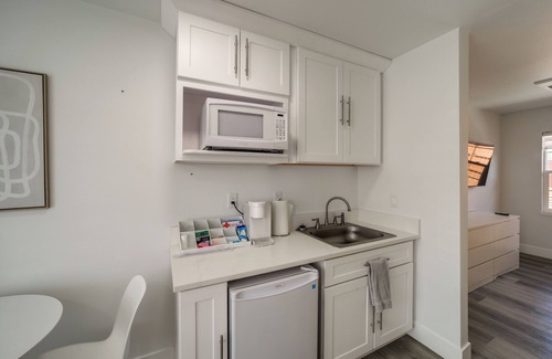 - Microwave, hot plate, mini fridge, Keurig coffee maker