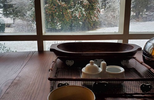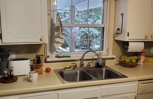 Take your coffee on the small covered porch for a chance of a glimpse of a deer. Inside you'll find a comfortable worn kitchen fully stocked with the essentials (feel free to make chocolate chip cookies!) order additional groceries from instacart and never leave the house, or go for a nearby outing on the lakes, trails, or tour the historic area.