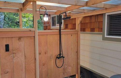 Enjoy a cozy and intimate stay here at Forest Creek Cottage with our year around creek that plays nature`s own relaxing music as you sit on the deck with a glass of wine or cup of coffee, or take a nap in the hammock on creek bank, or use our two bicycles to explore the neighborhood. Or, sooth those aches and pains in our private covered hot tub and outdoor shower with unlimited hot water. Best of all, no hidden or cleaning fees!